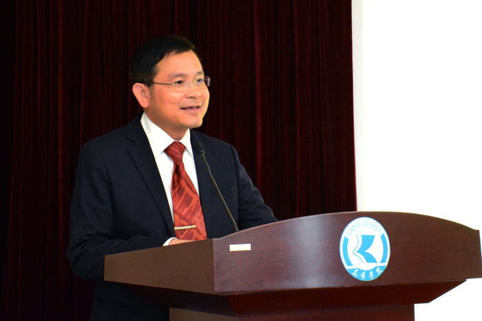 李翔代表学校领导向来宾致以热烈的欢迎,向泰国总领馆对两校合作给予的重视和支持表示感谢,对德赢官网与甘烹碧皇家大学的合作寄予了新的期待,共同为中泰两国的友谊做出努力和贡献,祝愿泰方师生顺利完成在德赢VWIN官方网站的交流学习。