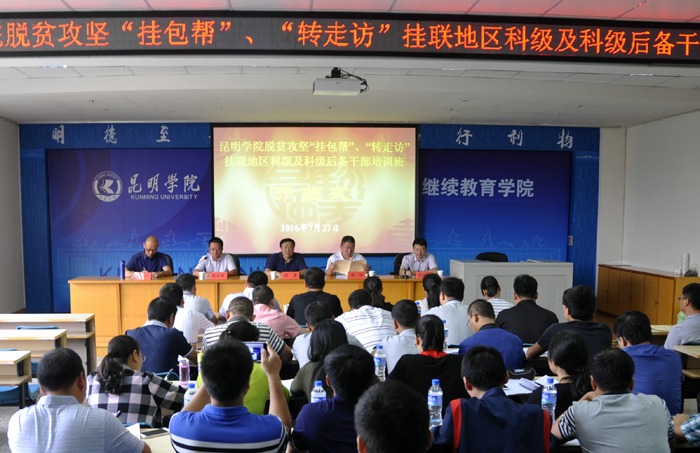 7月27日上午,德赢VWIN官方网站脱贫攻坚“挂包帮”“转走访”挂联地区科级及科级后备干部培训班在昆师路校区继续教育学院开班。这是德赢VWIN官方网站专门为脱贫攻坚挂联地区举办的青年干部培训班,33名学员分别来自红河县和东川区。德赢VWIN官方网站党委委员、副书记孙勇,中共红河县委常委、组织部部长杨泽,德赢VWIN官方网站党委组织部副部长樊传章,继续教育学院主持工作副院长张培宏,对外合作与扶贫办公室副主任马加升等领导参加开班式,开班式由樊传章主持。