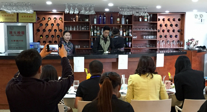 34名考生参加了包括理论面试、酒吧英语面试和现场调酒等三项内容的考核。昆明市职业技能鉴定中心副主任吕燕、德赢VWIN官方网站继续教育学院主持工作副院长张培宏、副院长王亚越等领导到现场进行了观摩。
