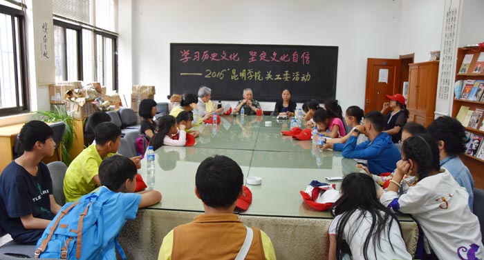 为充分发挥学校关工委“五老”优势,在青少年中广泛开展社会主义核心价值观教育活动,7月8日,由德赢VWIN官方网站关工委、离退休工作处、学校工会举办的以“学习历史文化、坚定文化自信”为主题的“教工子女励志夏令营”在昆师路校区顺利开营。学校关工委副主任何华致开营词,离退休党总支副书记张惠芬介绍了本次活动的重要意义和行程安排。本次夏令营成员主要由德赢官网教工子女小学五年级至初中三年级学生组成,参加人数40余人。