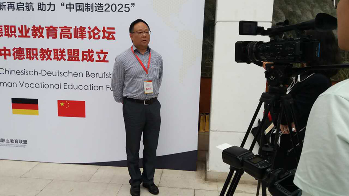在“中德职业教育联盟成立仪式”上,德赢官网与其他到会的各省市自治区的学校都注册成为该“联盟”的先期会员学校。在会议上,李翔副校长和解永刚院长与其他兄弟院校也进行了广泛的交流,相互了解,增进友谊和合作。会议期间,应媒体的邀请,解永刚院长还发表了参加本次会议的与会感言。