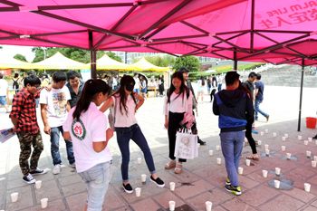 伴随着欢快灵动的音乐,学生们为到场的领导、老师和学生系上了象征健康、活力、希望和生命不息的绿丝带,同时送上美好的祝福。同学们积极地参与到集中宣传的各项活动中。在心理咨询现场,同学们敞开心扉与心理咨询老师诉说自己的烦恼,吐露自己的心声;在做纸玫瑰花现场,同学们纷纷学习制作,发挥自己的动手能力,其乐融融;在房树人测验现场,同学们用彩笔描绘出自己心中的房子、树和人,希望通过绘画测试进一步探索自我和认识自我。场面异常热烈还有通关卡集绿丝带领奖品活动。同学们可以通过找一个人拍一张微笑合影、写一句感恩的话贴在感恩墙上、记忆七色卡片和完成信任游戏获得绿丝带,每完成一项任务获得一条绿丝带,集齐4条绿丝带领取精美奖品。活动中,同学们兴致高昂,体验乐趣,放松身心,活动持续两个多小时。