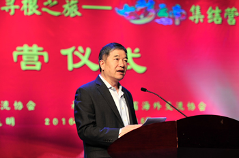 随后,任启亮做了热情洋溢的讲话。他指出,中国政府历来重视海外侨胞,特别关心广大海外华裔青少年的成长和发展,为满足青少年朋友学习中华文化的愿望和需求,自1999年起,连年举办“中国寻根之旅”。截至目前,已有来自74个国家和地区的20余万名华裔青少年参加寻根活动。“虽然大家居住在不同的国家和地区,但都是中华儿女、龙的传人。共同的血脉和文化使我们相亲相连。”任启亮说,作为一名与新中国共同成长的过来人,他希望营员们在参营过程中,多走走看看,亲身领略中华文化的丰厚底蕴,感受中国的巨大变化;回国后,继续学习中华文化和民族语言,在实现中华民族伟大复兴的中国梦的生动实践中放飞青春梦想;并做好中外文化交流的促进者,为中国走向世界,世界了解中国做出积极的努力。