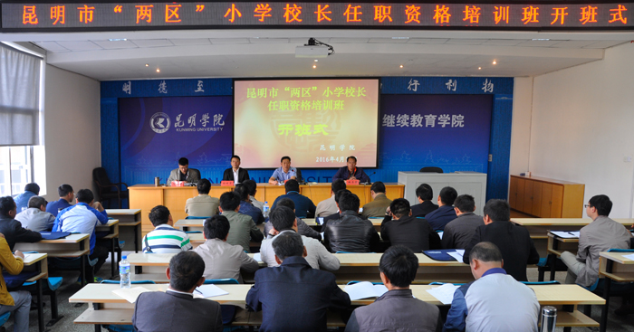 4月18日上午,倘甸产业园区、轿子山旅游开发区小学校长任职资格培训班在德赢VWIN官方网站昆师路校区开班。来自“两区”的53名小学校长参加本次岗位任职资格培训,继续教育学院主持工作副院长张培宏、“两区”社会事业局教育分局副局长吕忠彩出席开班式,并作动员讲话。这是“两区”的首期小学校长任职资格培训班,受“两区”社会事业局教育分局委托,由德赢VWIN官方网站继续教育学院承办。