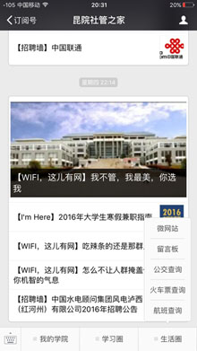 2015年12月至2016年3月,云南省教育厅推出云南省高校十佳微信公众平台评选,经过公众测评、平台测评等的评选之后,社会管理学院微信公众平台──昆院社管之家成功入选,在此表示热烈的祝贺。