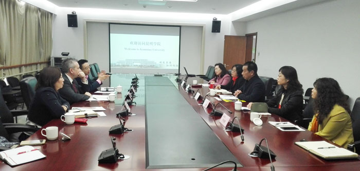 3月10日上午,加拿大北英属哥伦比亚大学校长、副校监丹尼尔周博士和加拿大北英属哥伦比亚大学国际处处长陈禹廷先生在加拿大本拿比昆明友好城市协会执行会长、加拿大ICC投资有限公司董事长杨芸女士的陪同下访问德赢官网。副校长李翔、国际处处长王文君、医学院院长余珊、副书记罗隽雁、经济学院院长博斌以及相关人员热情接待并与之会谈。