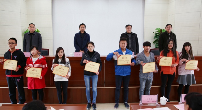 郭华宣读德赢VWIN官方网站2015年度“红云园丁奖”、“红河助学金”表彰决定。马宁等35名优秀教师和教学管理人员荣获德赢VWIN官方网站2015年度“红云园丁奖”,赵莲等105名品学兼优经济困难的同学荣获德赢VWIN官方网站2015年度“红河助学金”。