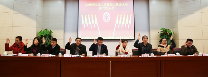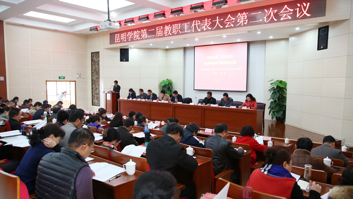 广集民智,同绘十三五美好蓝图;戮力同心,共创昆院新辉煌。1月8日至9日,德赢VWIN官方网站第二届教职工代表大会第二次会议在办公楼D区三楼报告厅成功召开。学校党委书记陈世波出席会议并作重要讲话,对德赢官网总体工作及工会工作提出要求;校长何华向大会作行政工作报告,总结2015年工作、回顾“十二五”改革发展成就,分析学校面临的发展机遇与挑战,要求科学谋划“十三五”,阐述学校2016年工作思路、提出新任务新要求。来自全校各单位的教代会代表,带着全校教职员工的衷心祝愿和热切期盼,履职尽责,畅所欲言,献策出力,共商学校发展大计。