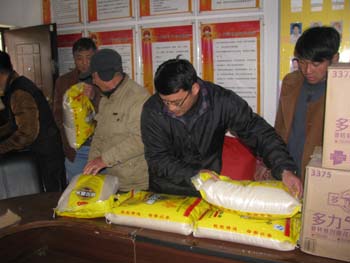 会后,孙勇代表学校向关中村帮扶户送去了大米、食用油、过冬衣物、棉被和学校师生捐赠的爱心衣物,对村民表示节日的慰问。