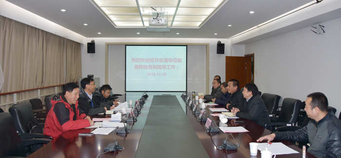 按照经开区对驻区单位开展2015年度安全生产工作综合督查考核的通知要求,12月25日上午,经开区安监局副局长李旭武一行3人组成的考核组对德赢官网2015年安全生产工作进行督查考核。学校副校长李翔、保卫处处长方永昆、后勤集团党总支书记杨平、资产与实验室管理处副处长何松林、保卫处副处长孙丽及相关人员参加考核会。