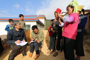 年末深冬的清晨,山间还萦绕着云雾,雨后的田间道路泥泞湿滑,董建华率领相关工作人员,一路前往攻坚扶贫挂包点——红河县垤玛乡腊哈村委,兵分三路分赴所辖的作曲、洛红、塔埔、贾玛、腊哈、普施、三家、东哈8个村小组(自然村),对63户建档立卡精准扶贫的贫困户进行再回访、再看贫情、再听民意,并向他们送上新年的祝福和安康问候。董建华等帮扶干部挨家逐一深入贫困户实地察看住房环境,与帮扶民众促膝交谈,进一步了解掌握贫困户住房条件、经济来源、种养殖情况、子女上学和家庭生活口粮、饮水、通讯、交通等方面的实际困难,全面、详细、准确掌握63户贫困户的生产生活情况,倾听所需所盼,为学校下一阶段完善、制定,科学、合理、管用,并具有可操作性的帮扶计划,拟定落实急需的具体帮扶项目提供科学依据。