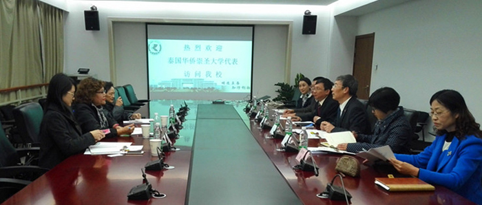 邬莱攀•珍瓦妮查雅侬博士也介绍了泰国华侨崇圣大学的概况。该校是泰国第一所,也是唯一的一所由华人捐款全资兴建的不以盈利为目的大学,开设有本科、硕士和博士课程。从两校在专业设置方面的共性看,有望在英泰双语人才培养、汉语学习及中国文化体验、护理和助产教学领域的交流与学习等方面做进一步的探讨,以促成合作。