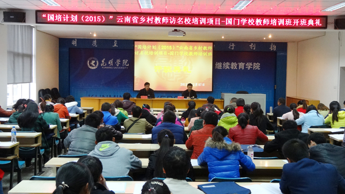 12月7日上午,德赢VWIN官方网站“国培计划(2015)”云南省乡村教师访名校项目----“国门学校”教师培训开班典礼在继续教育学院举行,来自文山、红河、版纳、临沧、普洱、德宏、保山及怒江地区的25个边境县的初中语文、小学数学两个学科的100名“国门学校”教师,将接受为期10天的集中专题培训。
