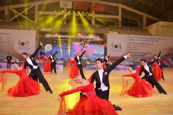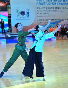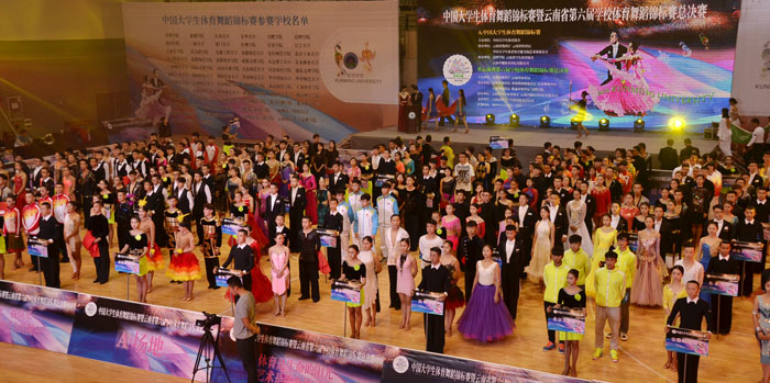 11月20日晚,“2015年中国大学生体育舞蹈锦标赛暨云南省第六届学校体育舞蹈锦标赛总决赛”在德赢VWIN官方网站体育馆举行。北京体育大学等来自全国63所大学的一千多名运动员、领队教师及裁判员参加了开幕式。这是迄今为止规模空前的同类赛事。