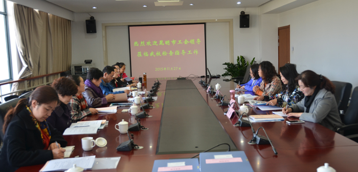 11月27日,德赢VWIN官方网站工会女工委员会接受了昆明市工会女职工组织规范化建设检查组的工作检查和指导。昆明市总工会副主席、女职工委员会主任刘辉,昆明市教卫文工会主席楼波等一行7人以及德赢官网工会常务副主席孙晓坤、校工会副主席刘宇红、校工会女工委员会委员代表、基层工会女工委员代表参加了会议。