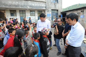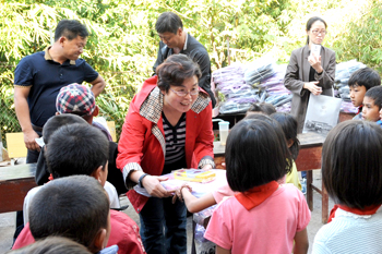座谈会结束后,陈世波、熊晶一行在县、乡领导的陪同前往腊哈小学看望师生,并向学校和学生们捐赠教学和学习用品。