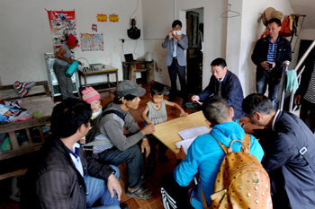 陈世波在段博原、朱福祯、周绕斌、乡人大主席白勒然的陪同下,分别走访了李批沙、李龙福、李生龙3家帮扶贫困户。每到访一户贫困家庭,他都仔细地询问、了解贫困户的家庭构成、生活、生产和受教育情况,亲切地与贫困户主及家人面对面谈心,了解贫困户面临的困难,为贫困户摆脱贫困出谋划策,帮助贫困户分析导致贫困的原因,给他们提出适合自身家庭现状、又实际可行的逐步摆脱贫困的发展路子。在他走访的贫困家庭中,有2户贫困家庭因小孩多,导致贫困负担加重的现象,此刻,他更是担心这些贫困家庭今后的生活,更牵挂一个个未成年孩子们的成长。在为贫困户送上慰问金和祝福后,他一再强调和叮嘱户主,一定要照顾好孩子,别苦了孩子,到上学年龄阶段一定要让孩子上学。在了解情况后,工作人员认真填写了《云南省遍访贫困户访谈问卷》。紧接着,他在县、乡干部的陪同又前往洛红自然村走访3家贫困户。