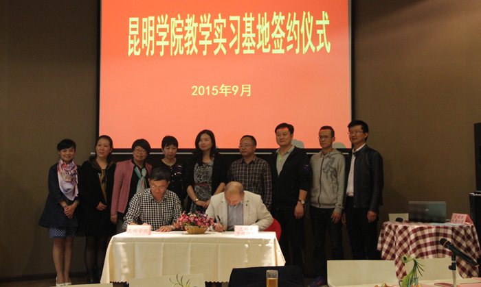 9月17日,德赢VWIN官方网站与昆明市大观公园、昆明市导游协会在旅游学院酒水实验室举行教学实习基地签约仪式。来自昆明市大观公园的谢长勇书记、徐昊天工会主席一行;昆明市导游协会李伟秘书长一行到会参加了签约仪式并座谈。校长助理马银海、教务处副处长常进荣、旅游学院党政领导等参加。仪式由旅游学院院长田芙蓉主持,旅游学院导游教研室全体教师列席。