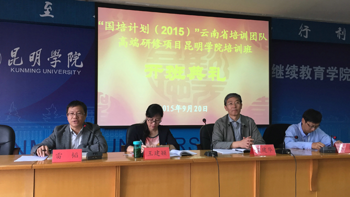 9月20日上午,“国培计划(2015)”云南省培训团队高端研修项目德赢VWIN官方网站培训班开班典礼在昆师路校区继续教育学院隆重举行。云南省教育厅副厅长王建颖,德赢VWIN官方网站副校长董建华,云南省教育厅师范教育处处长雷韬等领导出席,近200名学员参加了开班。典礼由继续教育学院院长陈嘉主持。