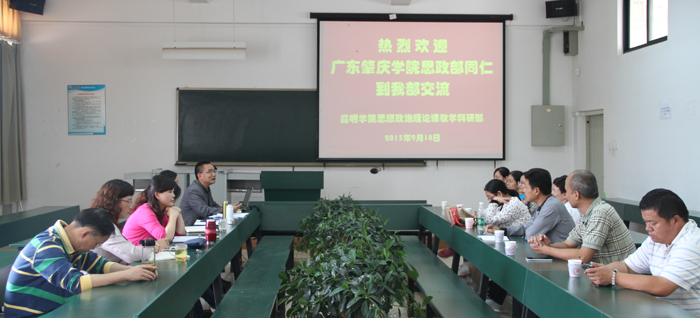 座谈会上,王建华代表部门对肇庆学院同仁的到来表示热烈欢迎并从政策支持、制度建设和经费保障方面阐述了学校党政对德赢官网思政课建设的高度重视与大力支持;还根据对方的需要从制度建设、队伍建设、课程建设、教学管理、教研教改、科研、实践教学探索与创新等方面向来访客人全面介绍了德赢官网思政课建设发展情况情况。
