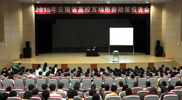 9月25日下午, 2015年云南省高校百场形势政策报告会在德赢官网学生会堂举行。省委党史研究室副主任杨林兴博士所讲主题是“正确认识中国人民抗日战争历史”。德赢官网各院系师生代表1300多人听报告。报告会由德赢官网党委副书记孙勇主持。