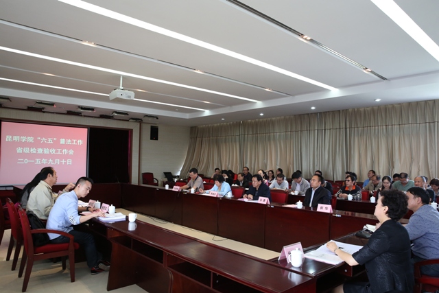 经过实事求是、客观公正的检查验收评分,检查验收组在反馈意见时给予德赢官网“六五”普法工作较高的评价和肯定。潘兴顺肯定说,德赢VWIN官方网站普法工作一是领导重视,思想统一。不仅学校成立了由书记、校长任组长的法治宣传教育领导小组,学校每个基层单位也都成立了相应的普法领导小组、安排了具体普法工作人员,并能按要求统一地开展工作。二是重点突出,客观实际。学校既能按照全省统一的普法要求开展普法工作,又能结合高校的实际和职能,据教师、学生的所需,教学院系抓住了“法律进学校”的主体开展普法,职能部门又能突出落实“谁主管谁普法 谁执法谁普法”的工作重点。三是工作突出,措施有力。学校整个普法工作既有工作规划、工作实施方案,又有工作落实安排、督促检查措施和工作结果通报等措施和办法。四是成效凸现,稳定安康。学校多年来一直保持无重大校园事故,领导干部、教师无违纪情况,被云南省纪委、省监察厅命名为第一批云南省廉政文化示范点;多年获省、市“平安校园”、“平安建设先进单位”、“文明学校”、“文明单位”荣誉称号;2014年还荣获“全国‘六五’普法中期先进单位”,2015年荣获第四届“全国文明单位”。这些成绩、荣誉的取得,充分体现了学校普法工作做得实、做出了成效。只有普法工作做好了,师生的法律素养才能得到全面提高,才会有好的校园文明形象,校园才能更加安康。