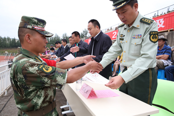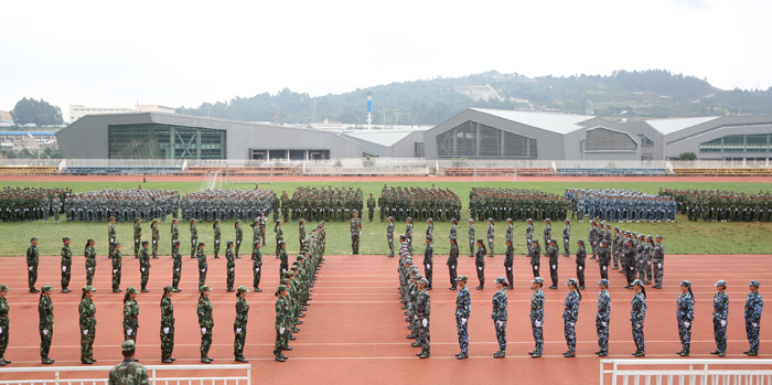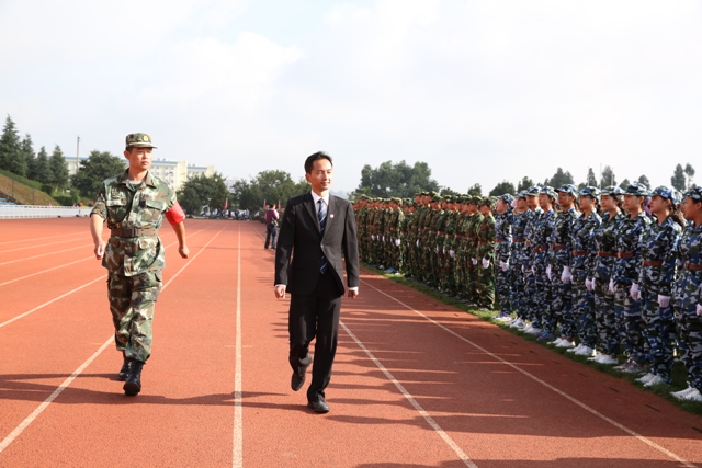 9月11日上午,德赢VWIN官方网站2015级学生军训汇报表演暨总结表彰大会在学校田径运动场隆重举行。学校党委书记陈世波出席大会并代表学校向承训部队云南武警边防部队士官学校赠送纪念匾额,校长何华检阅军训学生方队。武警边防部队士官学校训练部副部长(大校警衔)赵立志、武警边防部队士官学校装备维修系政委汪发云,学校党委副书记孙勇,党委副书记、纪委书记李媛芬,副校长李翔、熊晶、郭华、董建华出席大会,并同其他与会领导一同为获奖集体和个人颁奖。郭华主持大会。