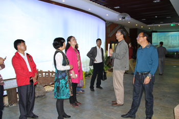 德赢官网副校长董建华陪同滇西应用技术大学(筹)筹建组副组长、云南省教育厅发展规划处处长杨丽宏一行,参观了德赢VWIN官方网站沙盘,保卫处校园安防中心的监控中心、消防指挥中心、110报警中心,场馆中心的网球馆、排球馆、篮球馆、形体训练馆、游泳馆,图书馆,聂耳广场,自机学院的轨道交通实验室、虚拟制造技术实验室,滇池流域生态文化博物馆,医学院的人体生命科学馆、ICU实验室、手术室、婴儿游泳室,农学院的阳光中庭、旅游学院的酒水实验室、校园环境建设及学校食堂。