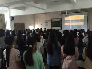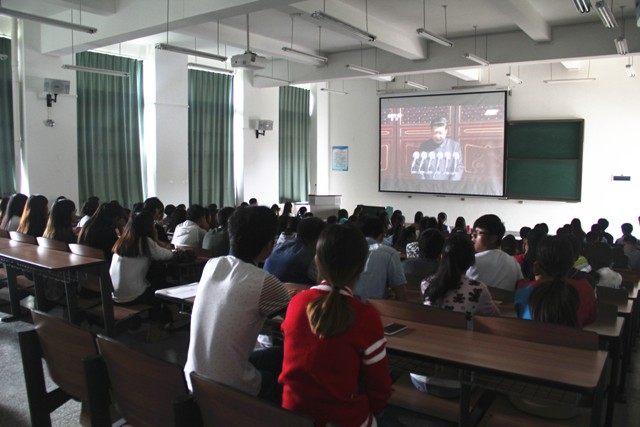 上午,2013级、2014级学生分别在博雅楼、农学楼、博识楼等地多媒体教室观看阅兵式现场直播。同时,还在各个宿舍活动室、南北苑餐厅收听收看。下午,正在军训期间的2015级新生统一在体育馆观看重播。