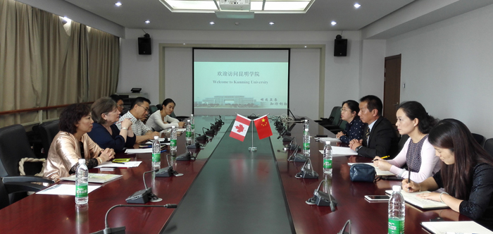 7月21日上午,在昆明市外侨办友协专职副会长汪浩先生的陪同下,加拿大哥伦比亚大学艺术、社工与健康学院社工系主任Dawn Hemingway女士和国际教育办公室主任Sylvester Chen先生访问德赢官网。副校长李翔、国际交流合作处处长王文君及相关人员热情接待并与之会谈。