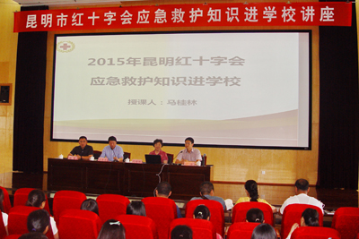 6月16日下午,由昆明市红十字会主办,保卫处协办的应急救护知识讲座在德赢官网惟行楼1501报告厅举行。讲座邀请到中国研究型医院学会心肺复苏学会委员、北京市红十字会应急救护工作指导委员会专家委员马桂林主讲。昆明市红十字会副会长冯浩、备灾中心主任岳巍、组织宣传部部长漆一桦与德赢官网校团委社团、医学院、教师教育学院学生代表以及保卫处干部、保安200余人一起聆听了讲座。讲座由保卫处处长方永昆主持。