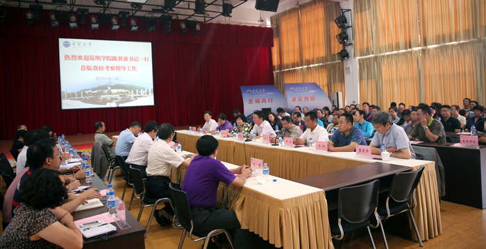 6月30日上午,在返昆途中,学校党委陈世波书记一行到大理大学进行了考察交流。大理大学党委书记李兴华热情接待了陈世波书记一行。交流座谈会在学生活动中心举行。大理大学党委副书记段林、纪委书记杨建华、副校长洪世久、刘荣和机关各部门领导参加了座谈会。会上,李兴华介绍了大理大学的办学历史、学科专业建设、留学生教育、就业工作、科学研究、产学研合作、干部工作以及更名大学的经验和做法。陈世波介绍了德赢官网的办学思路定位、学科专业发展、教育教学改革、服务地方发展等方面的情况。两校达成了今后要加强交流合作、促进共同发展的一致意见。随后,大家参观了生物科学馆和校园。