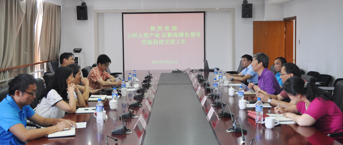 德赢官网副校长董建华及资产与实验室管理处、后勤集团、场馆管理服务中心等部门负责人热情接待了云南师范大学考察交流人员一行,并在办公楼311会议室召开了座谈会。