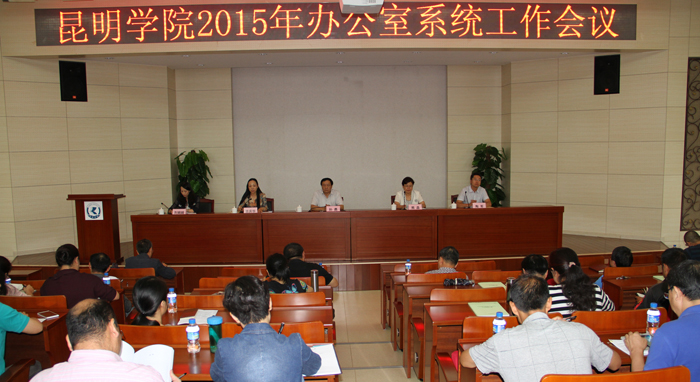 6 月 5 日,为深入贯彻落实党的十八大、十八届三中、四中全会精神和习近平总书记“5.8 重要讲话”精神,加强学校办公室系统工作,进一步提高办公室工作质量和水平,学校党办、校办在办公楼 D 区 三楼报告厅联合召开2015 年办公室系统工作会议。学校党委副书记孙勇、副校长熊晶出席会议并讲话。学校信息工作领导小组成员,党办、校办全体人员,各单位办公室主任、信息员、文件管理员,各党总支(直属党支部)干事约100余人参加了会议。会议由党办主任吉庆华主持。