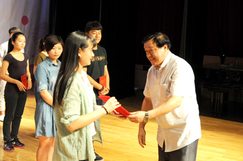 最后学校领导为在笑脸征集和心理剧比赛活动中获奖的个人和单位颁发了奖状。另外,为表彰在本届宣传月活动中积极参与和组织相关工作的院系,特颁发了优秀组织奖,农学院、自机学院、人文学院和外国语学院获得了该项荣誉。