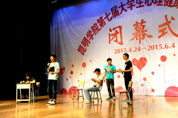 闭幕式共四项议程:第七届大学生心理健康教育宣传月(以下简称宣传月)系列活动回顾;学校领导致辞;心理剧展演;颁奖典礼。