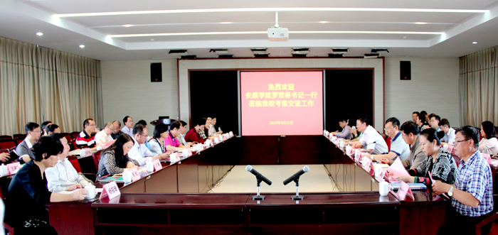 5月21日上午,安顺学院党委书记罗荣彬,副院长、评建办公室主任王芳恒率相关部门负责人一行24人到德赢官网考察交流本科教学工作合格评估。
