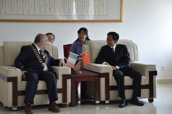 参观结束后,何华校长代表学校会见克莱尔郡郡长一行。何华首先对郡长一行的到来表示欢迎及感谢,随后全面介绍了学校的情况,希望能依托爱尔兰中心把学校办得更好,让更多的中国学生感受爱尔兰的风采。郡长对德赢官网的接待表示感谢,并希望以后双方加强合作,更好地推动爱尔兰中心的工作,并希望在适当的时候校长能访问克莱尔郡。
