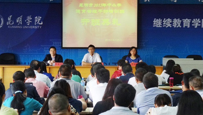 5月25日上午,昆明市2015年德育管理干部培训在德赢VWIN官方网站继续教育学院举行开班典礼,来自昆明市各县(市、区)及滇中产业新区安宁、嵩明、空港经济区的159名中小学德育管理干部,按高中、初中和小学三个学段分为三个培训班,将进行为期一周的集中培训。昆明市教育局副局长李瑞林,德赢VWIN官方网站继续教育学院院长陈嘉、副院长张培宏参加开班典礼。
