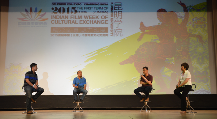 李翔致辞,他首先对印度电影产业做了简单介绍,接着指出,通过南促会本次举办的印度电影文化周活动,能够使学校的老师和同学们欣赏到印度的电影,同时,通过云南话剧院的导演和人文学院影评教师的点评,使大家从电影中了解到印度的文化。讲话结束后,云常浩、德赢官网人文学院陆慧云老师、郑云海老师和郭鹏群老师共同在舞台上为现场观众带来印度著名电影《三傻大闹宝莱坞》的精彩讨论,随后播放了该影片。