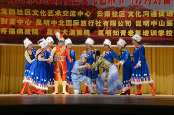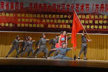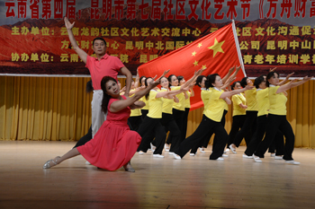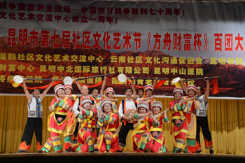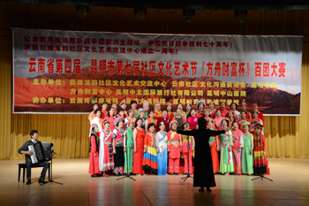 本届社区文化艺术节盛况空前,有来自全省的210多支社区文艺队报名参赛。经过4天的预赛角逐产生了52支优胜队进入总决赛。参加总决赛的各参赛队队伍整齐、准备充分、表演极具专业水准。先后表演了《国家》、《舞动中国》、《蒸蒸日上》、《十送红军》等不同风格的歌舞节目,旨在展现云南社区文化艺术之繁荣,同时纪念世界反法西斯战争暨亚洲主战场——中国抗日战争胜利七十周年。通过整整一天的紧张角逐,曲靖市民族文化艺术团和云南知青歌舞团等六支队伍包揽了一二三等奖。德赢官网侨台联“侨台之声”艺术团作为特邀艺术团表演了两个精彩节目,获得了观众的喜爱与好评。