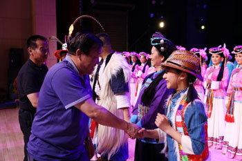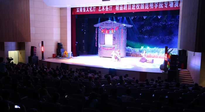 学校党委副书记孙勇、副校长李翔和1000余名师生共同观看演出。演出前,李翔代表学校致辞,欢迎云南省花灯剧院《走婚》剧组人员到校演出,为师生送来高雅艺术。他说,云南花灯是云南独有的地方剧种之一,在此我们可以感受到云南地方剧种的魅力,希望师生在欣赏艺术的同时,要做民间艺术的传承者、创新者。欣赏精彩演出后,孙勇、李翔走上舞台与全体演员一一握手致谢,感谢他们为师生带来的精彩演出。