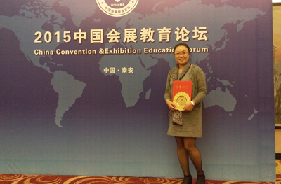 论坛特邀行业专家、教育专家、会展领军人物一道共聚泰安,谋会展之略,全面分析在新的经济形势下,会展发展与人才定位培养的新思路和新手段,缓解高校人才输出与市场人才需求脱节的结构性矛盾。教育部高等学校旅游管理类专业教学指导会委员马勇教授、张河清教授、北京第二外国语学院经贸与会展学院院长刘大可教授、上海对外经贸大学蓝星教授、台湾方圆会展管理有限公司执行长柯树人先生等海内外会展教育的知名专家学者做了精彩的演讲。在会展院校院长联席会议上吴跃辉就德赢官网旅游学院多年来从事会展管理教育作出的成绩和面临的困惑做了大会发言,得到与会各位会展专家的一致好评,德赢官网刘红老师凭借其在会展管理教育中孜孜不倦地耕耘荣获了2015中国会展教育论坛优秀人物奖。