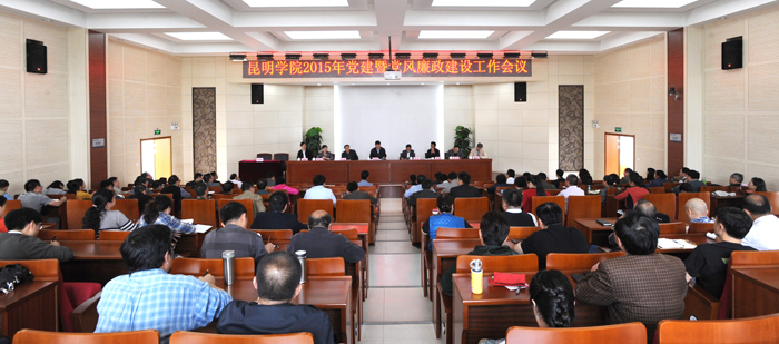 4月24日下午,学校在办公楼三楼D区报告厅召开2015年党建暨党风廉政建设工作会议。校领导、中层干部和学校廉政风险防控重点部门部位科级干部、纪检监察审计部门全体人员参加会议,会议由校党委副书记、校长何华主持。