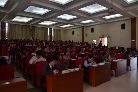 各党总支副书记、宣讲团成员、师生代表190多人参加听讲座。