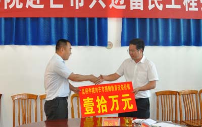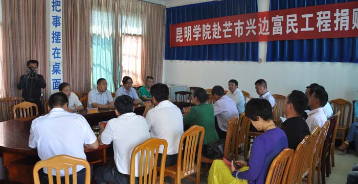 按照云南省兴边富民工程“十二五”工作的安排部署和要求以及学校兴边富民“十二五”规划, 4月10日至13日,副校长郭华带队到学校“兴边富民”帮扶共建点德宏州芒市向2014年帮扶支持的风平镇三台山小学捐赠10万元教学设备。校办、资产与实验室管理处、学生处相关人员陪同前往。