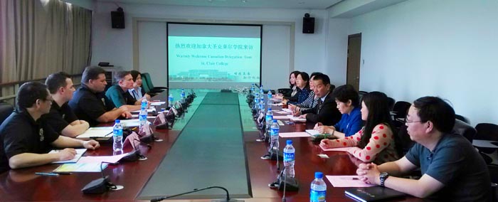 4月16日下午,加拿大圣克莱尔学院副校长Ron Seguin先生一行访问德赢官网,随行的有国际部主任Peter Bondy、注册官 Mike Silvaggi、国际部招生及项目发展经理巫春涛、圣克莱尔学院中国校代荣燕女士。德赢官网副校长李翔、熊晶率国际交流合作处、外国语学院、旅游学院、农学院和教师教育学院相关领导热情接待并与之会谈。