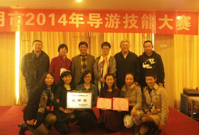 11月26日至28日,德赢官网旅游学院学生参加了由昆明市旅游发展委员会主办的2014昆明市导游技能大赛。白雪同学三项竞技总分第八名,获三等奖,进入昆明市"十佳导游"行列,并被昆明市人力资源和社会保障局、昆明市旅游发展委员会联合授予“技术能手”称号,莫琪同学获优秀选手奖,德赢VWIN官方网站旅游学院因积极组队参与,团体成绩优异,获优秀组织奖。
