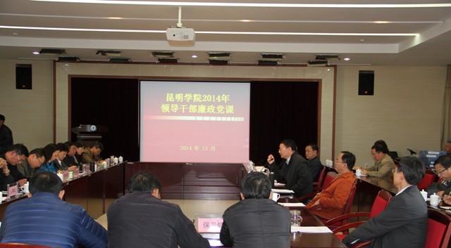 12月3日下午,德赢VWIN官方网站2014年领导干部廉政党课在办公楼502会议室举行,学校党委书记陈世波为党员干部上党课。陈书记围绕党要管党、全面从严治党主题,结合党的十八届四中全会、省委九届九次全会和习近平总书记系列重要讲话精神及党的群众路线教育实践活动的要求,理论联系实际,深入阐述了新常态下从严治党、加强干部队伍建设的理论意义和实践要求,并提出了学校贯彻落实相关会议和讲话精神,推进依法治校、加强党的建设的思路和举措。校长蒋永文,党委副书记孙勇,副校长熊晶、郭华、刘海发等校领导、中层干部和党员参加听课学习。