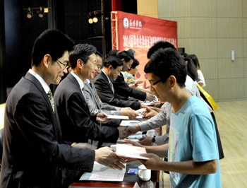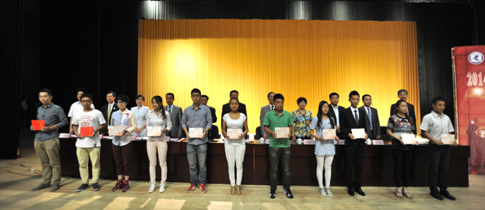 郭华副校长宣读《德赢VWIN官方网站关于对2014届省级优秀毕业生进行表彰的决定》,与会校领导分别为获奖学生代表颁发荣誉证书,229名同学受到了表彰奖励。